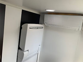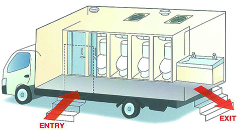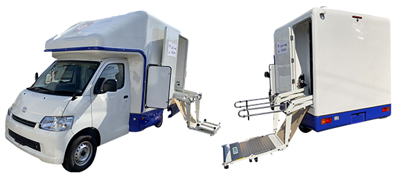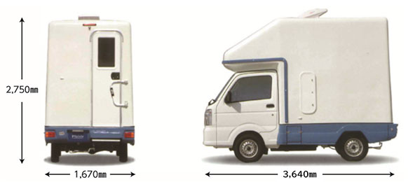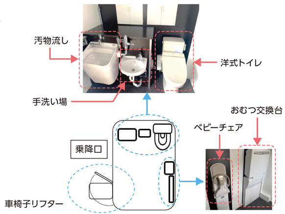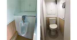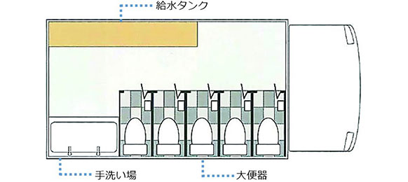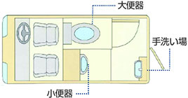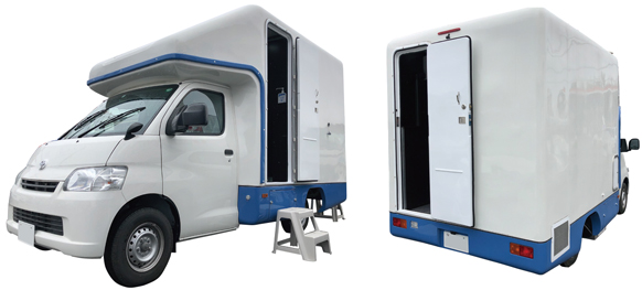 小型トイレカーの小便器を大便器に変更、室内エアコンを付けるなど、内装のカスタマイズが可能です。