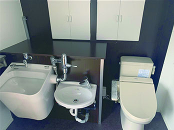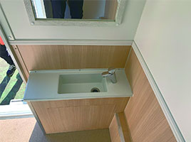 手洗い場も完備。トイレの衛生環境を大幅に向上させます。オプションで消毒液ホルダーなどにも対応可能です。