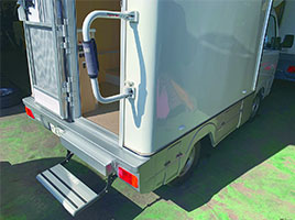 格納可能な昇降ステップにより容易に乗降ができます。また、折り畳み式手摺があるのでより安全に乗降が可能です。