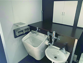 ストーマ装具を洗ったり、汚れ物を流すことができる汚物流しも装備。