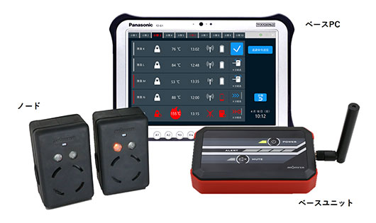 また、高温の状態で一定時間が経過すると、ノードとベースユニットの両方で警報が鳴ります(60℃で5分)。